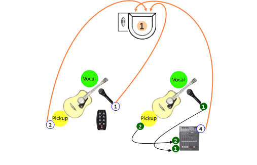 Solo Vocalist / Guitarist with Model I with added second Vocalist / Guitarist using a mixer