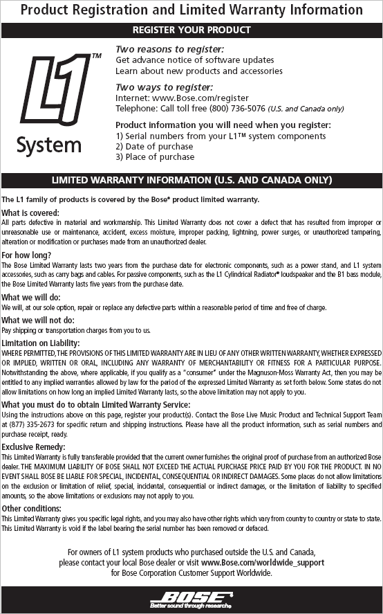 L1 T1 Warranty Card - pdf version.