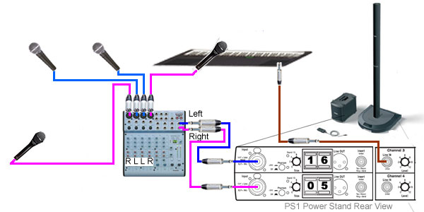 - Run the Mixer LEFT output to the Power Stand Channel 1