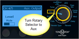 Now you can use the Aux Level (shown as 100%) to balance the output between the Aux output and Master Output