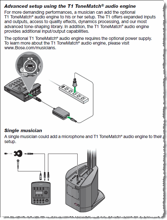 Bill-at-Bose [1] talks about setting the gain on a T1 ToneMatch Audio Engine.
