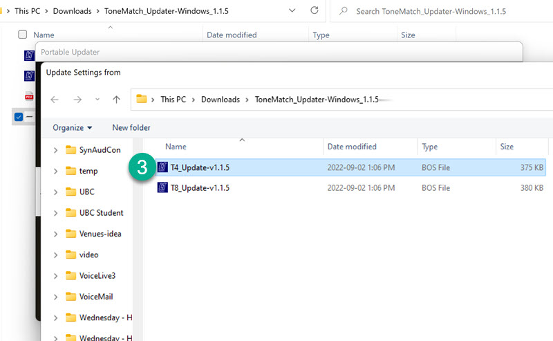 - move the *.bos files to the same folder as the ToneMatch Updater. This will make it easier to find the files when using the ToneMatch Updater.