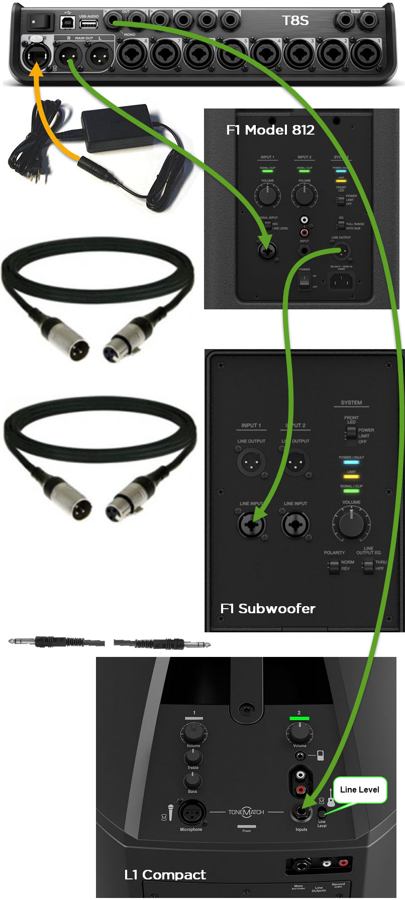 T8 to F1 Model 812 to F1 Subwoofer and L1 Compact