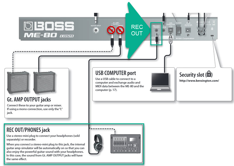 Referring to page three of the Boss ME-80 Users Guide. Boss ME 80 Users Guide