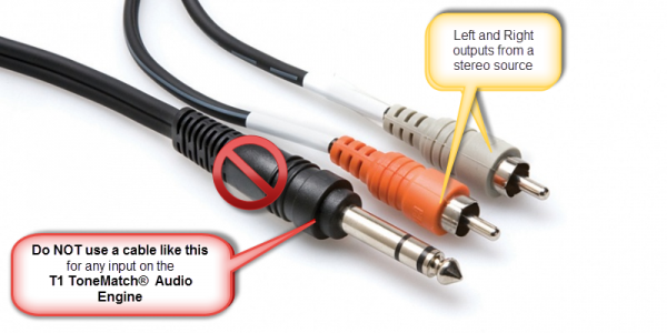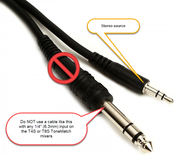 - If your source has a 1/8" stereo output, use a 1/8" Tip-Ring-Sleeve cable to connect to the Compact Channel 2 1/8" input.
