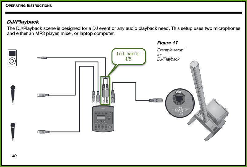 To connect a stereo source to a T1 ToneMatch Audio Engine see: Backing Tracks