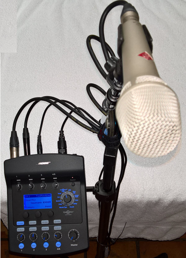 - I use the velcro to secure the ToneMatch cable to the microphone stand just above the Microphone Stand Adapter (the thing that clamps around the mic stand).