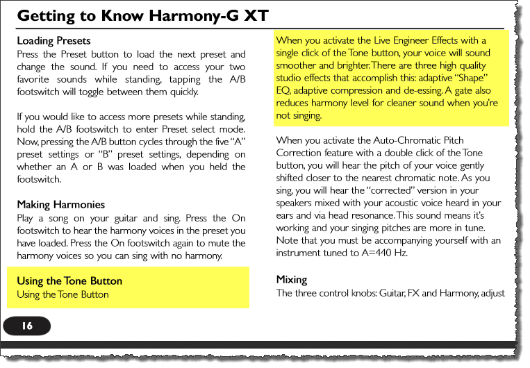 From page 16 of the TC-Helicon Harmony G-XT manual