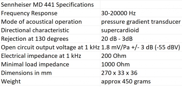 | Specifications | Sennheiser MD 445 Specifications |