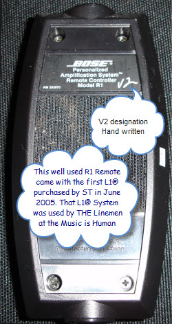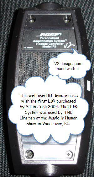 This well used R1 Remote came with the first L1® purchased by ST in June 2005. That L1® System was used by THE Linemen at the Music is Human show in Vancouver, BC.